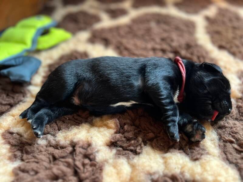 Mijn lieve brave Kris waarvan ik dacht dit is de eerste die in de kist gaat bevallen. Ze besloot om tien minuten voor de bevalling op de bank te gaan liggen. Daar bleef ze liggen, tot haar 7 prachtige puppy's op de wereld kwamen. Om met iets over de klok van 24 uur perst ze er twee puppy's achter elkaar uit, en de andere 5 waren er ook heel erg snel. Binnen vier uur tijd ware ze er allemaal. Als eerste een prachtig klein meisje gevolgd door 6 prachtige stevige knullen!