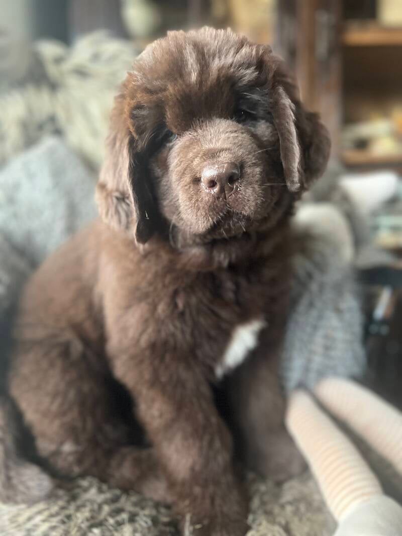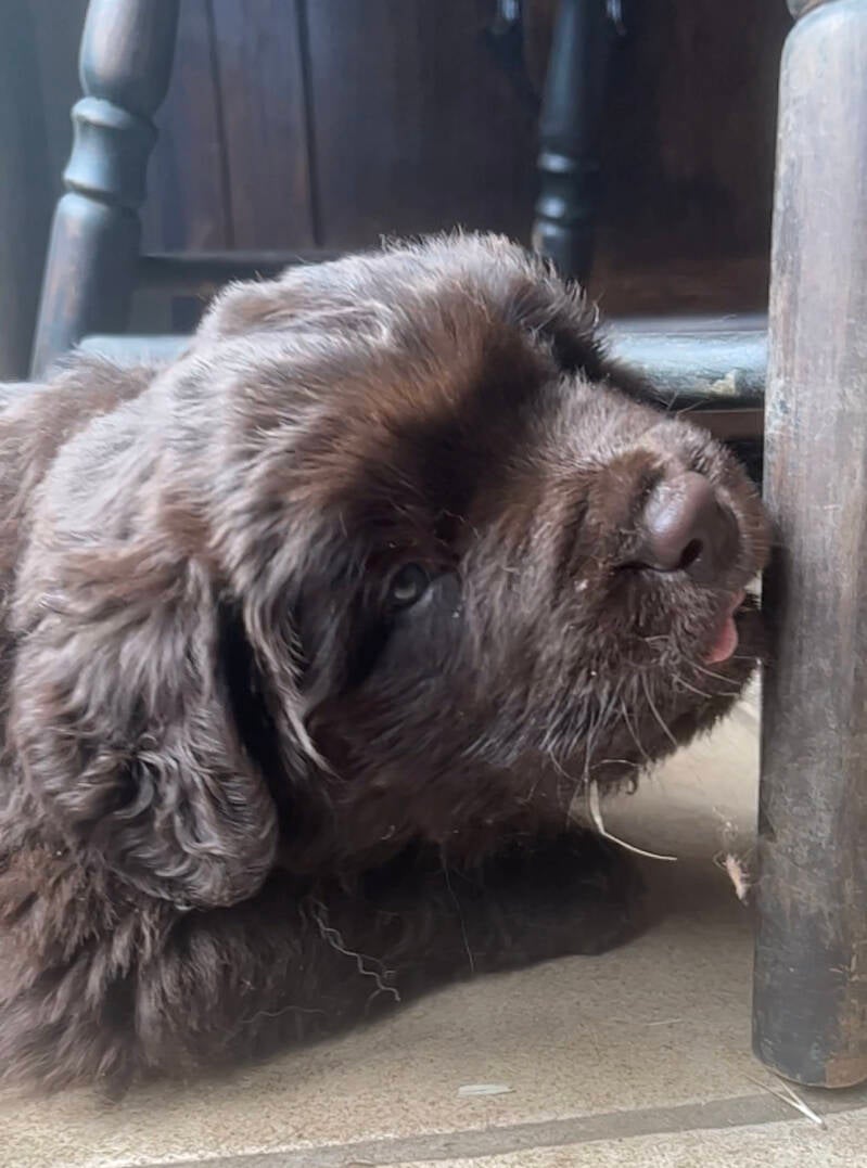 7 mei Stich begint nu water te verliezen en om 8,30 begint ze te graven krijgt haar eerste perswee en begint weer met graven dat zo nog twee keer om iets voor half tien gaat haar staart omhoog en om half tien wordt de eerste geboren Willow een mooi bruin meisje, we leggen haar aan maar de persweeën beginnen weer om 9.53 wordt een tweede meisje geboren we noemen haar Bloem. Precies een half uurtje daarna komt er een prachtige zwarte pup tevoorschijn we noemen haar Nola. Om 11.21 komt er een prachtig klein bruin kereltje onze Pelle. Dan helaas om 12,45 wordt er een hele grote zwarte reu geboren maar er zit geen leven in. We zijn er stil van zo akelig, als Stitch even niet oplet halen we hem bij haar weg gelukkig heeft ze het niet door en we moeten verder! Om 13.14 wordt Linde geboren een mooi bruin groot teefje. Dan gebeurt er niets dus we wachten. Stitch is dan ook heel erg moe rond 17.00 begint ze weer te persen maar het lukt niet uiteindelijk komt Hans onze dierenarts en hij geeft haar oxicodon om 19.45 komt er een zwart reutje te Voorschoten ook hij was overleden. De moet zonk ons in de schoenen wat verdrietig en er moest er nog een geboren worden. Om 20.50 komt er nog een pup en wat zijn we blij onze springlevende Bloesem een prachtig zwart meisje met een prachtig wit vlekje op haar borst .